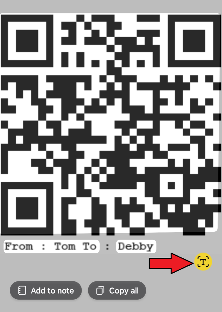 - Tap and Hold your finger at the center of QR code
